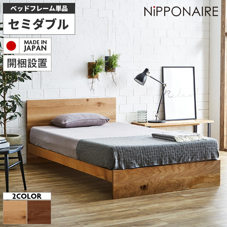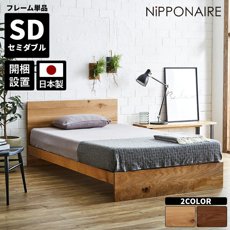 \全商品に使える11%offクーポンあり/ セミダブルベッド ベッドフレーム おしゃれ 北欧 ベッド モダン セミダブル フレームのみ シンプル 国産 天然木 木製 無垢 ウォールナット オーク 高級感 スノコ すのこ 日本製 オイル塗装 フラット 高さ調整 高さ調節