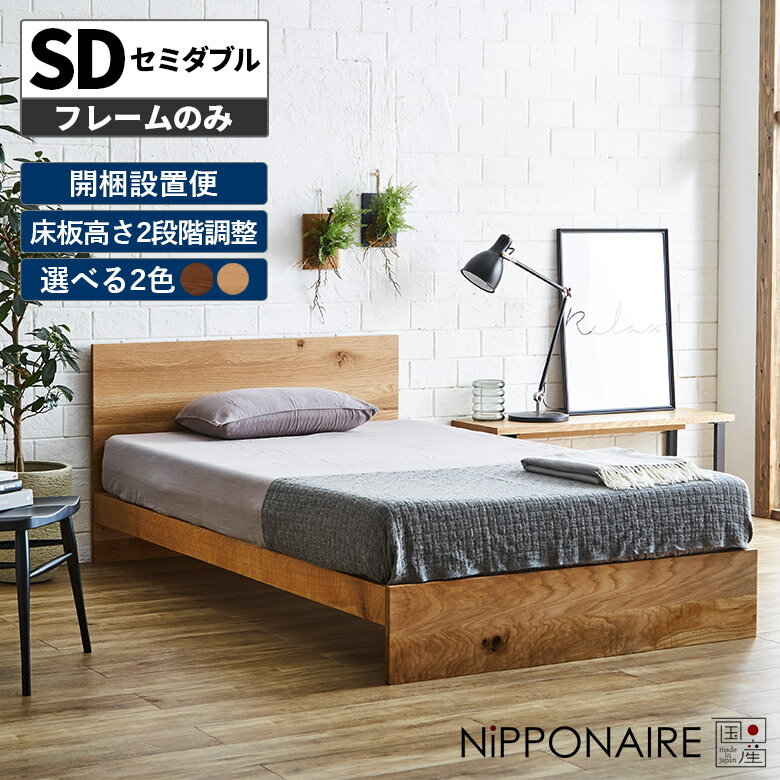 【全商品に使える2%offクーポンあり!!】 セミダブルベッド シンプル フレームのみ セミダブル ベッド おしゃれ 北欧 モダン ベッドフレーム 国産 天然木 木製 無垢 ウォールナット オーク 高級感 スノコ すのこ 日本製 オイル塗装 フラット 高さ調整 高さ調節