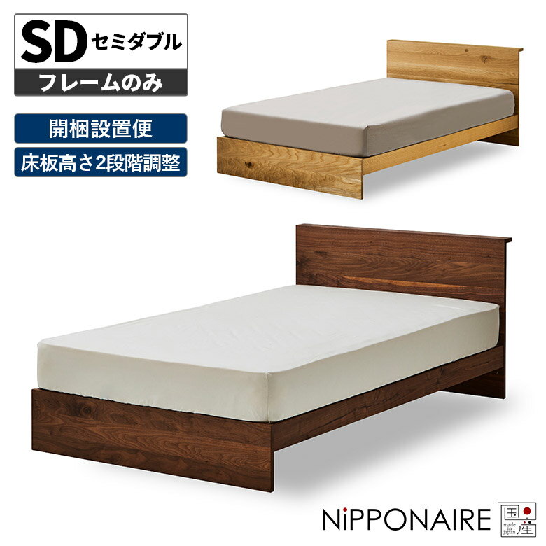 \全商品に使える11%offクーポンあり/ ベッド セミダブル ベッドフレーム 単品 シンプル フレームのみ 北欧 高級感 おしゃれ すのこ 無垢材 天然木 木製 ウォールナット オーク 国産 日本製 モダン スノコ セミダブルベッド 高さ調整 高さ調節 オイル塗装