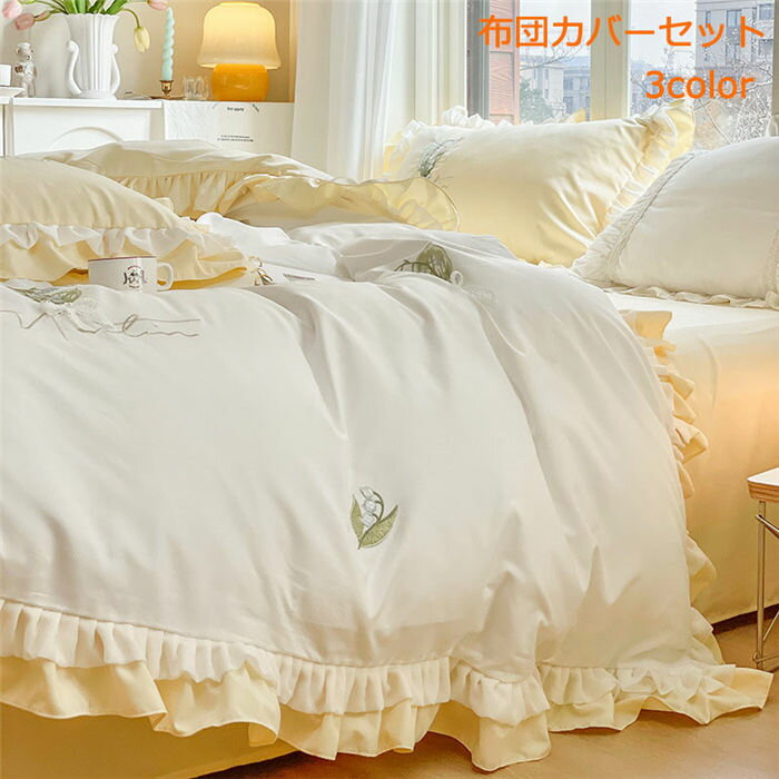 【時間限定10%OFF】布団カバー 4点セット シングル セミダブル ベッドカバー 布団カバーセット シーツカバー 掛け布団カバー ボックスシーツ セット 寝具カバー シーツセット カバーセット フリル付き かわいい おしゃれ 送料無料