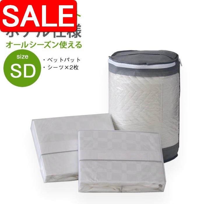 【スーパーSALE 10%OFF!】 セミダブルサイズ 寝具 3点セット ホテル仕様 ベッドパット BOXシーツ2枚 丸洗いOK 洗濯 洗える ホワイト ホテル仕様市松シーツ 高品質寝具 快適睡眠