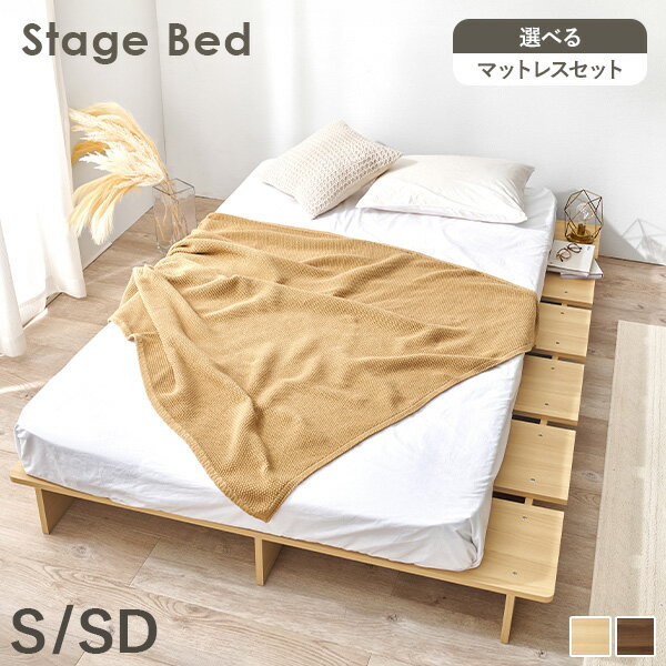 ★10%OFF★12/4 20時~ ステージベッド ヘッドレスベッド S/SD ( ベッド 一人暮らし 学生 新生活 おしゃれ 韓国 シングル マットレス付き マットレス セット セミダブル ベッドフレーム すのこ 低いベッド フロアベッド ロータイプ ローベッド )