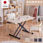 昇降テーブル 120cm ガス圧式 キャスター付き 無段階調整 ポリ板 ダイニングテーブル センターテーブル デスク グレージュ ベージュ ブラウン ネイビー リフィ