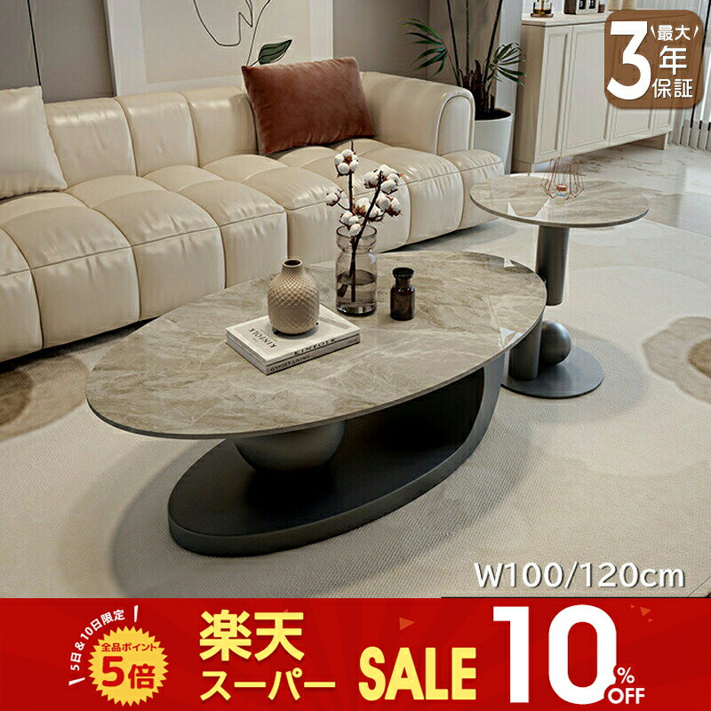 10%OFFクーポン★レビュー特典・センターテーブル 大理石調 ローテーブル 楕円形 セラミック リビングテーブル サイドテーブル 単品/2個セット 幅100 120 130cm