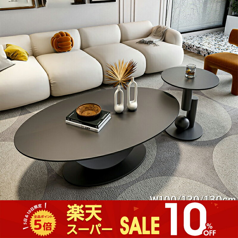 【SS限定10%OFF】センターテーブル ローテーブル サイドテーブル 幅100/120/130cm セラミック 隋円形 ラグジュアリー スタイリッシュ ブラック ホワイト 大理石風 石目調 傷に強い おしゃれ 北欧 モダン 一人暮らし リビング おすすめ 送料無料