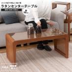 センターテーブル 幅110 おしゃれ 棚付き ガラステーブル ラタン 長方形 TOE-130BK リビングテーブル