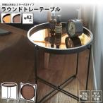 センターテーブル Sサイズ ラウンド おしゃれ 天板トレー ミラー&木目 円形 丸型 CIR-501 BR/MR ラウンド トレーテーブル S