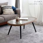 センターテーブル ローテーブル ガラス ラタン調 ガーデン ベランダ グランピング [RESONAIRE リゾネア 105 リビングテーブル]