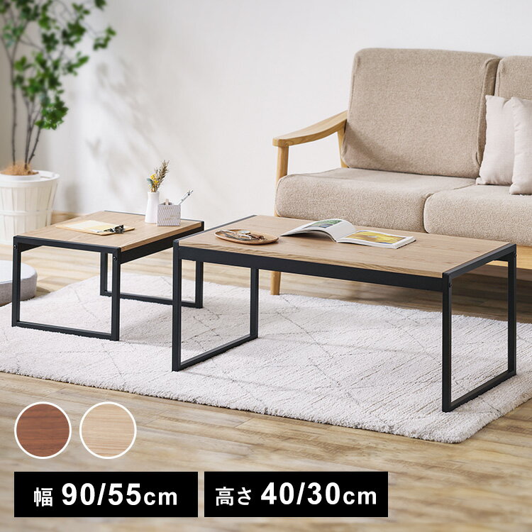 《13%off》テーブル 北欧 おしゃれ ネストテーブル センターテーブル 幅90cm 幅55cm テーブル スチール脚 天然木 机 リビングテーブル スチールフレームセンターテーブル ローテーブル 90×50cm 55×40cm 木製 アイリスオーヤマ SFCT-900N[2512SE]