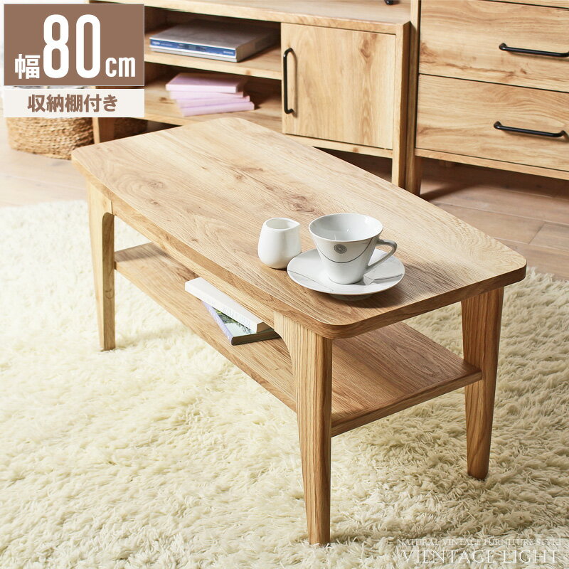 【先着10%OFFクーポン配布中★】 テーブル ローテーブル 幅80 木製 リビングテーブル センターテーブル ミニテーブル カフェテーブル おしゃれ 棚付き 収納付き 北欧 ナチュラル ヴィンテージ 木目 奥行40 高さ40 省スペース コンパクト vtl-8040t netc5