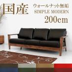 3人掛けソファ ウォールナット無垢 オイル塗装 フェザーミックス 日本製 オーダーソファ ソフトレザー 本革 国産