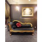 カウチソファ クラシックスタイル エレガントローズ W180cm ゴールド&ブラックアンティーク ミッドナイトブルーベルベット 輸入 オーダー家具