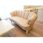 輸入 オーダー家具 ベルサイユ3Pソファ アンティークホワイト&ゴールド色 リボンとブーケ柄オフホワイト色の張地