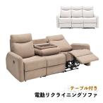 爆買 電動リクライニングソファ 3人掛け ソファー テーブル付き カップホルダー付き 撥水 抗菌 キズに強い ファブリック