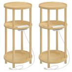 【並行輸入品】HOOBRO 充電ステーション付き小型ラウンドサイドテーブル2個セット 3段ラウンドバンブーエンドテーブル コンパクトソファベッド