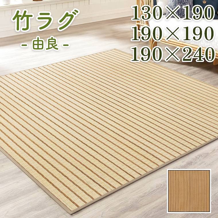 ラグ 夏用 竹ラグ バンブーラグ 竹製 カーペット シンプル 無地【130×190cm】【190×190cm】【190×240cm】長方形 正方形 涼感 春 夏 リビング ソファ前 子ども部屋 ひんやり 涼しい 和風 モダン 敷物 掃除【由良】プレーベル ラグ