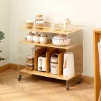 【並行輸入品】車輪付きアクリルエンドテーブル、3段クリアソファサイドテーブルモダンなコーヒーテーブル、オープンバンブー収納棚付き、ローリング収納