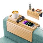 【並行輸入品】プレミアムバンブーソファアームトレイテーブル 木製カウチアームトレイ&クリップオンソファテレビトレイ ノンスリップソファア