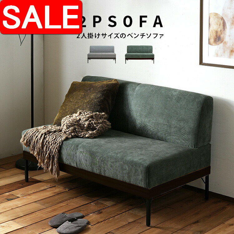 【スーパーSALE 10%OFF!】 アームレス ファブリック ベンチソファ 2人掛け 単品 Toria トリア 二人掛け ウッド調フレーム ベンチタイプソファ リビング ダイニング グリーン ブラック 千鳥格子柄 コーデュロイ生地 幅120