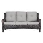 【並行輸入品】屋外用ソファウィッカーパティオソファ 3人掛けラタンパティオ家具会話ソファ 深い座席と快適なクッション付き ポーチデッキバルコ