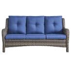 【並行輸入品】アウトドアソファ 籐 パティオソファ 3人掛けラタンパティオ家具会話ソファ 深い座席と快適なクッション付き ポーチデッキバルコ