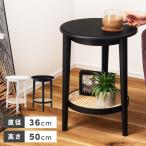 [レビュー特典]ラタン風 サイドテーブル 円形 丸 直径36cm 高さ50cm 籐風 棚付き ナイトテーブル ミニテーブル コンパクト 小さめ ベッドサイド ソファ横 リモコン 収納 花台 シンプル ナチュラル おしゃれ 北欧風 韓国風 海外風 白 黒 PT-471[lt]