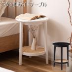 サイドテーブル テーブル サイドテーブル ラタン 二段 2段 丸 円 北欧 韓国インテリア シンプル ナチュラル 寝室 ソファーサイド ブラック 黒 代引不可
