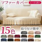 ソファーカバー フリル付き 3人掛け 2人掛け かけるだけ ストレッチ 肘あり 肘付き 1人掛け 4人掛け 犬 猫 対策 ワッフル 伸縮 伸びる おしゃれ 可愛い 可愛い