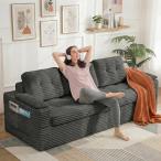 【並行輸入品】HOMYKA 85インチソファ サイドポケット付き コーデュロイ生地 3人掛けソファ リビングルーム用 快適でモダンな小さなソファ