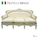 イタリア製 FRATELLI ORIGGIフラテリ・オリッジ社REF6-3F79MB イタリア製3人掛けソファ 木製フレームファブリックゴールド 開梱設置配送