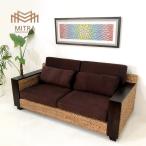 ウォーターヒヤシンス ソファー 3人掛けソファ アジアン家具 マホガニー無垢肘 リゾートおしゃれ 5層ウレタンクッション 安心1年保証 [ ミトラ MITRA ]