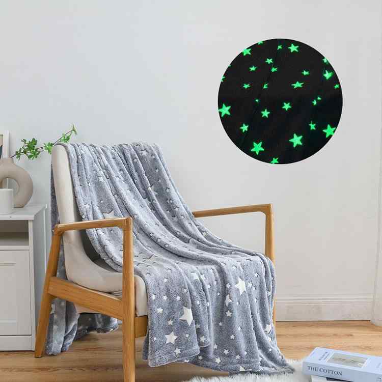 毛布 蓄光 星柄 光る フランネル生地 オフィス お昼寝 仮眠用 ソファカバー ひざ掛け 冷房対策 通年 ポリエステル グレー ふわふわ 柔らかい(x200)