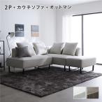 コーナーカウチソファ セット 2人掛 + カウチソファ + オットマン アッシュホワイト 洗えるカバー スチール脚 ポケットコイル ソファ スツール NAXAM ナザ...