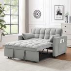 【並行輸入品】53インチ コンバーチブルスリーパーソファベッド 調節可能な背もたれ、長椅子、サイドテーブル、USB/Type Cポート付き