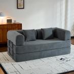 【並行輸入品】ZEIINPA 快適なコンバーチブル折りたたみマットレスカウチ、固定形状フレーム付きフロアソファベッド、アームレスト付きコーデュロ