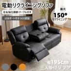 【USBポート付き+150度調節可能】リクライニングチェア リクライニングソファ 3人掛け 電動 リクライニング 左右独立調節 テーブル付き オットマン一体型 電動