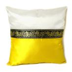 クッションカバー 象さん約40cm [イエローxホワイト] 人工シルク おしゃれな エスニック クッション カバー タイ雑貨 アジアン 雑貨