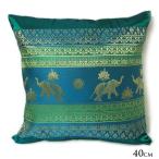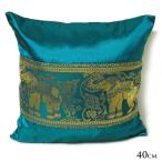 クッションカバー 象さん約40cm [ターコイズ] 人工シルク おしゃれな エスニック クッション カバー タイ雑貨 アジアン 雑貨 バリ タイ 雑貨 インテリア