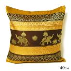クッションカバー 象さん約40cm [ゴールド系] 人工シルク おしゃれな エスニック クッション カバー タイ雑貨 アジアン 雑貨 バリ タイ 雑貨 インテリア