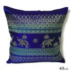 クッションカバー 象さん約40cm 金糸 【ブルー系・ゴールド】人工シルク おしゃれな エスニック クッション カバー アジアン 雑貨 バリ タイ 雑貨 インテリア