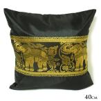 クッションカバー 象さん約40cm 金糸 【ブラック・ゴールド】 人工シルク おしゃれな エスニック クッション カバー アジアン 雑貨 バリ タイ 雑貨 インテリア