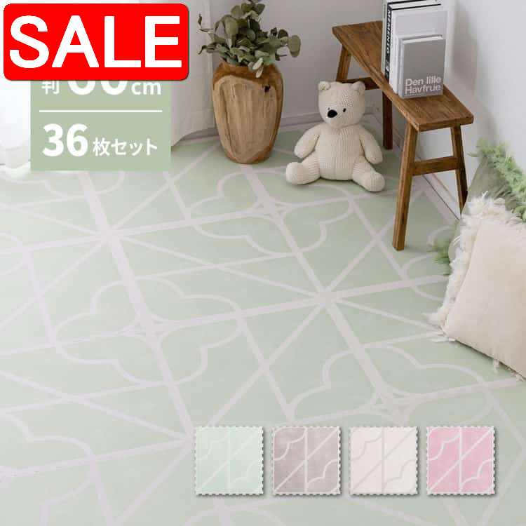 【スーパーSALE 10%OFF!】 おしゃれなレトロデザイン ジョイントマット キュロス 約60×60cm 大判 36枚入り 水洗いOK サイドパーツ付き ホットカーペット対応 床暖房対応 防音対策 萩原 北海道追加送料 沖縄 離島別途送料見積もり
