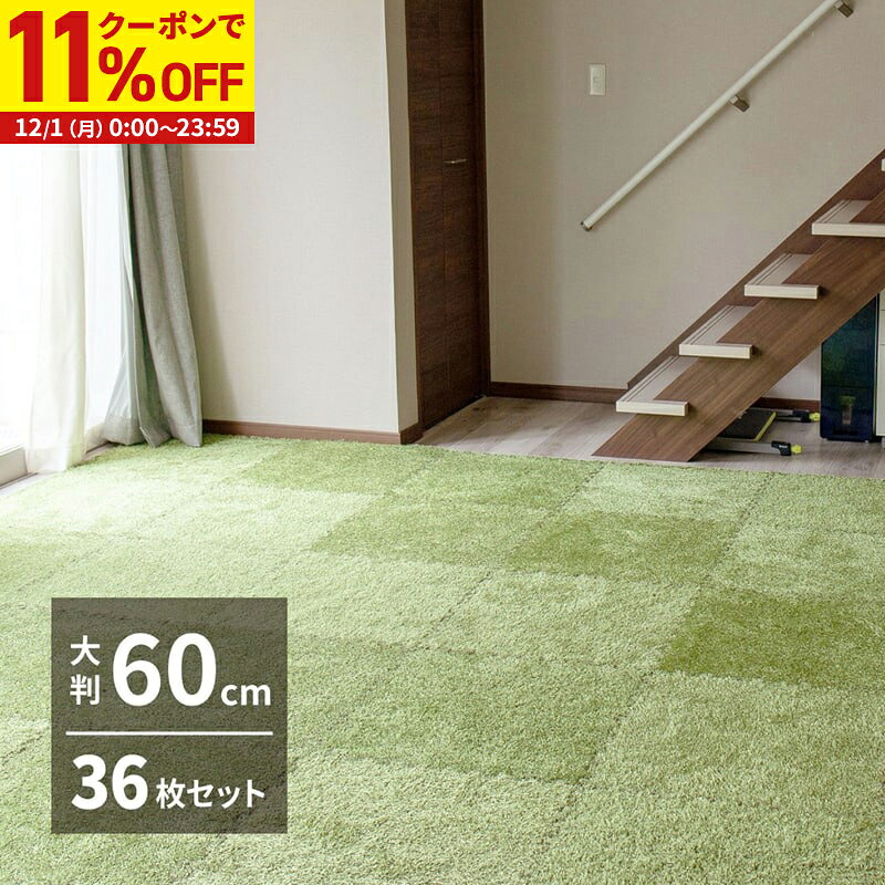 【クーポンで10%OFF】 室内 防音 ジョイントマット 芝生風 60×60cm 36枚セット(メーカー直送品・商品代引不可)フロアマット プレイマット パズルマット クッションマット EVAマット 人工芝 子供部屋 リビング 衝撃吸収 ホットカーペット 床暖房 対応