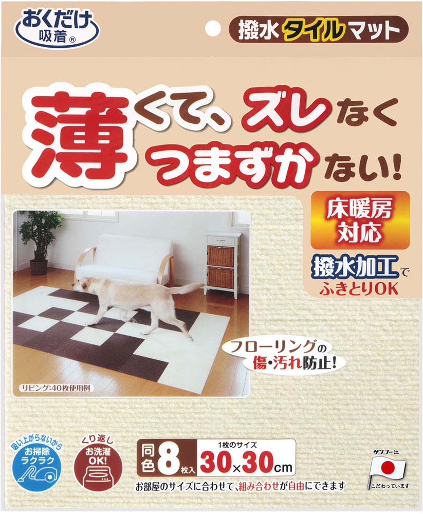 【11/30から全品3%OFFクーポン 先着100回&P10倍】 撥水タイルマット 8枚入 衛生用品 マット シート ジョイントマット バリアフリー 吸着マット カラーバリエーション 撥水加工 洗濯機 丸洗い アイボリー KI31 IV