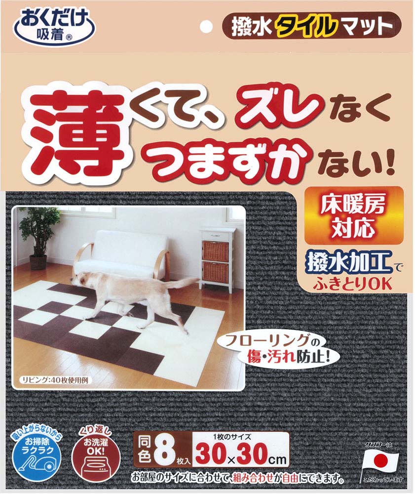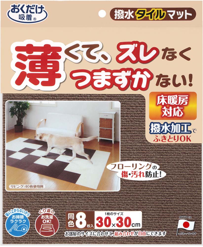 【11/30から全品3%OFFクーポン 先着100回&P10倍】 撥水タイルマット 8枚入 衛生用品 マット シート ジョイントマット バリアフリー 吸着マット カラーバリエーション 撥水加工 洗濯機 丸洗い ブラウン KI32 BR
