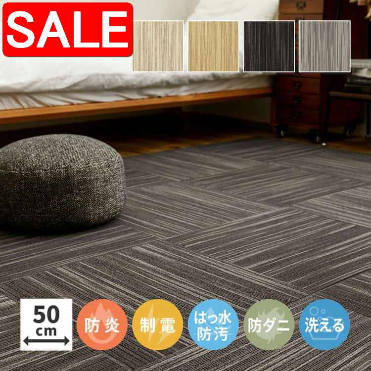 [11%OFF!12/1限定クーポン]タイルカーペット 吸着カーペット サンゲツ スタイルキット 北欧 カーペット じゅうたん ペット 防音 夏用 冬用 おしゃれ 防炎 制電 床暖OK 40cm×40cm スタイルキットプラス ストライプ 日本製 JQ