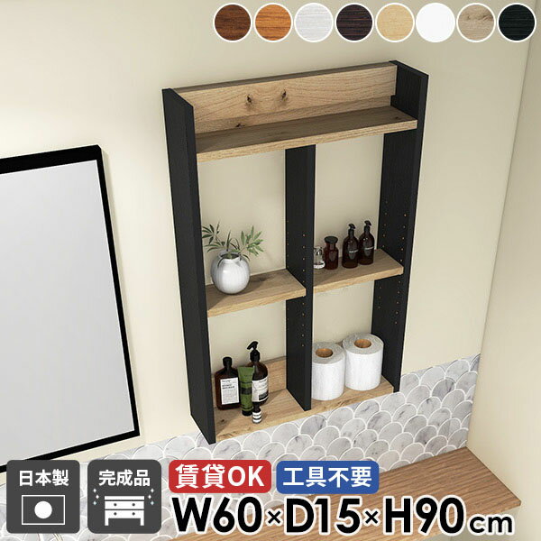 トイレ棚 石膏ボード ウォールラック 洗面所棚 賃貸 おしゃれ 3段 本棚 タオルラック 脱衣所 洗面所 ウォールシェルフ 壁面 吊戸棚 オープンシェルフ 北欧 ホワイト タオル収納 壁面収納 ディスプレイ棚 完成品 幅60cm 奥行15cm 高さ90cm 【MiraiウォールラックH/601590】 ★