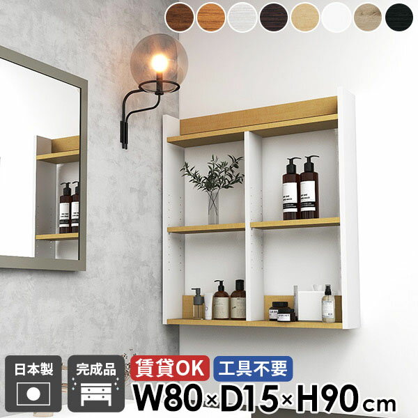 トイレ棚 石膏ボード ウォールラック 洗面所棚 賃貸 おしゃれ 3段 本棚 タオルラック 脱衣所 タオル収納 ウォールシェルフ オープンシェルフ 洗面所 北欧 吊戸棚 ホワイト 壁面 壁面収納 ディスプレイ棚 完成品 幅80cm 奥行15cm 高さ90cm 【MiraiウォールラックH/801590】 ★