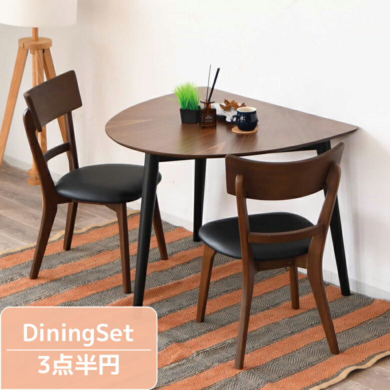 【3/3 20:00〜 全商品ポイント2倍!!】 ダイニングテーブルセット 2人用 半円 2人掛け おしゃれ シンプル 3点セット 幅90 オーク ウォールナット 突板 PVC 合成皮革 肘掛け無し アームレス ダイニングセット ダイニング 90cm幅 チェア2脚 ナチュラル ブラウン