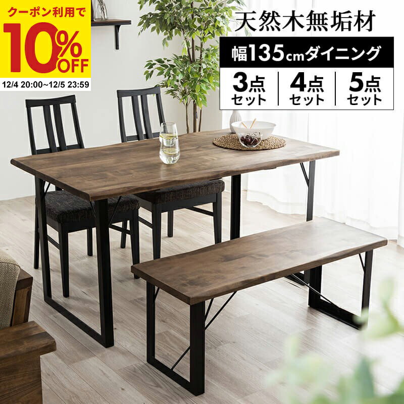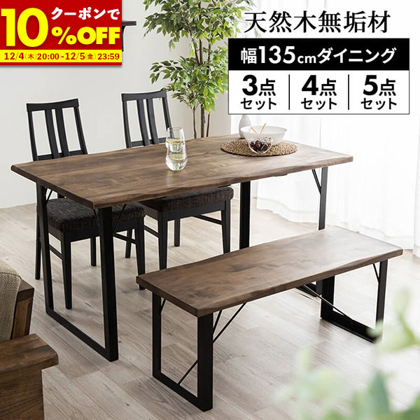 【1名限定50%OFFクーポン★12/4 20:00〜】 ダイニングテーブルセット 3点セット 4点セット 5点セット ダイニングセット 幅135 ベンチセット チェアセット 4人用 無垢 ベンチ ダイニングテーブル テーブル オイル塗装 天然木 無垢材 ブラウン モダン 和モダン
